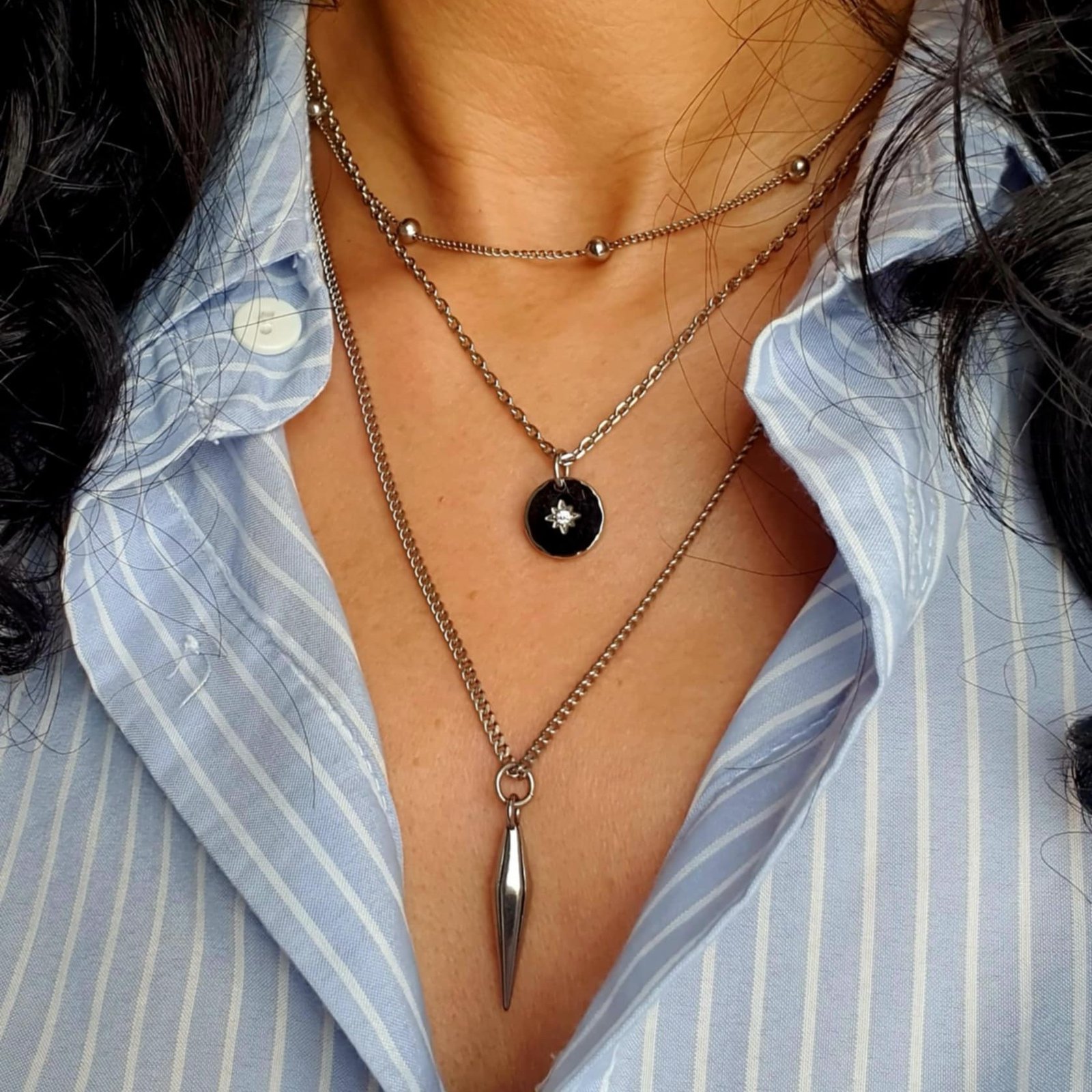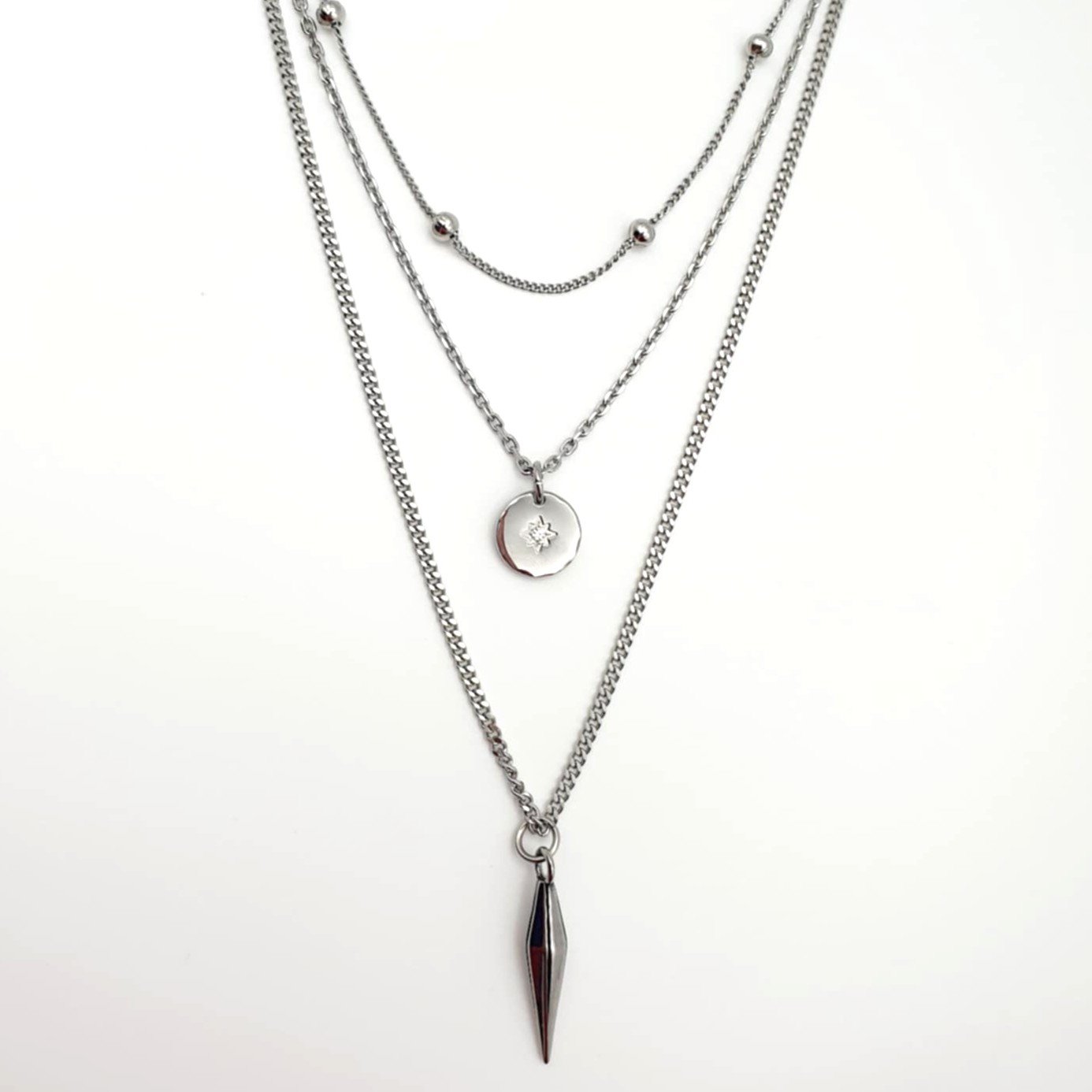 Découvrez le collier INAA triple chaîne en acier inoxydable, un bijou parfaitement conçu pour allier praticité et élégance. Avec ses trois chaînes combinées en un seul modèle, ce collier révolutionne votre façon de porter des accessoires. Fini les tracas pour assortir plusieurs colliers, il offre une esthétique harmonieuse et soignée en un clin d’œil.